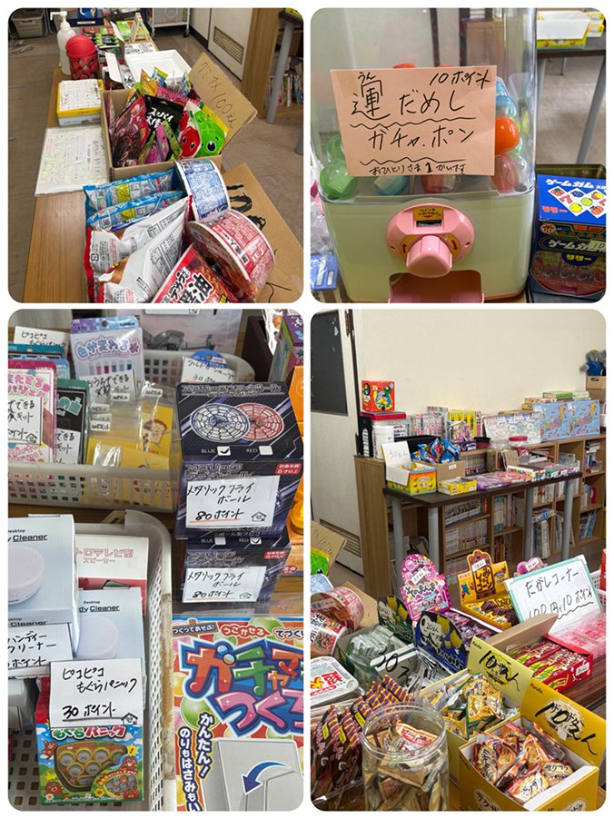 1年365日学習を続けているんですよ…今年もたくさんのポイントが貯まることを先生は期待してます。今回の1番人気は「ドローン」でした。ゲットした子は本当にラッキーでしたね。もちろん駄菓子も根強い人気商品で…特に「くじつき」が盛り上がりました〜!