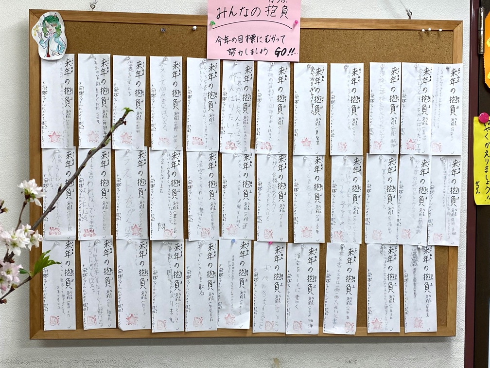 小学生さんに、今年の抱負をひとりずつ書いてもらい、教室のボードに張り出してみました。