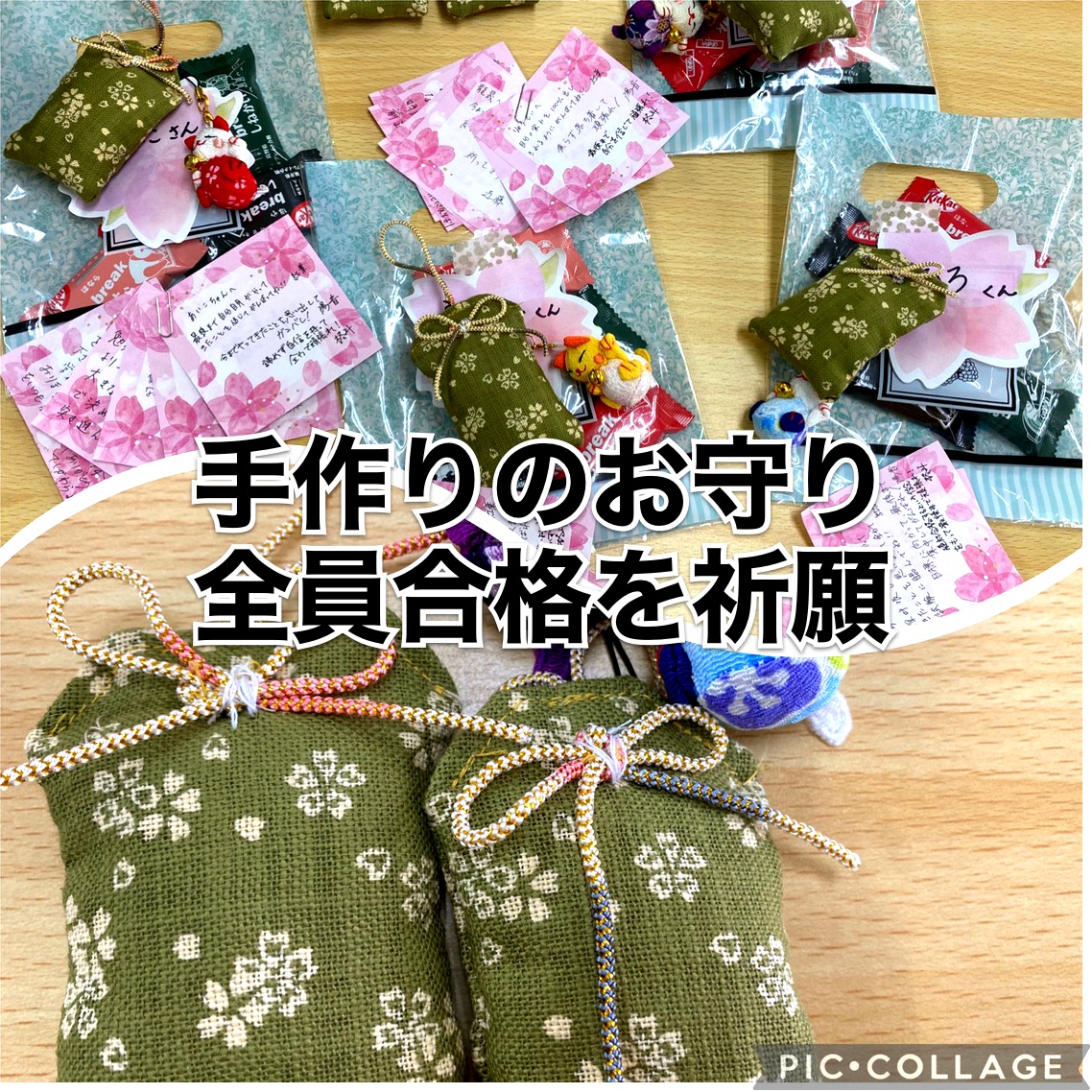 今年は合格祈願をこめて、不器用ながらアシスタントの先生方とお守りを縫いました!!