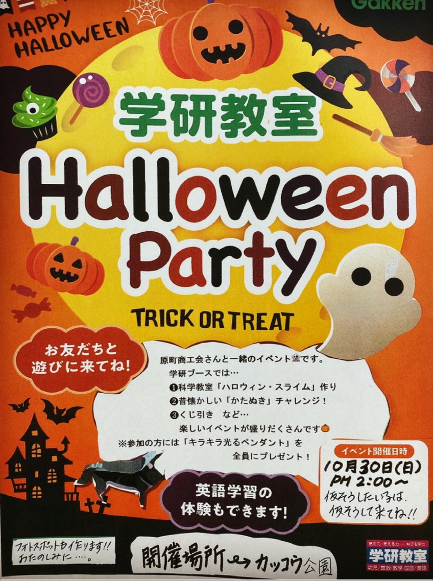 今回は、初の試みで原町商工会さんとのコラボで開催します。学研教室は、科学教室やフォトスポットや英語クイズ等をご用意してお待ちしております!