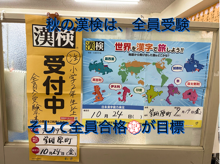 - 10月24日(金)の漢検は全員受験でGO