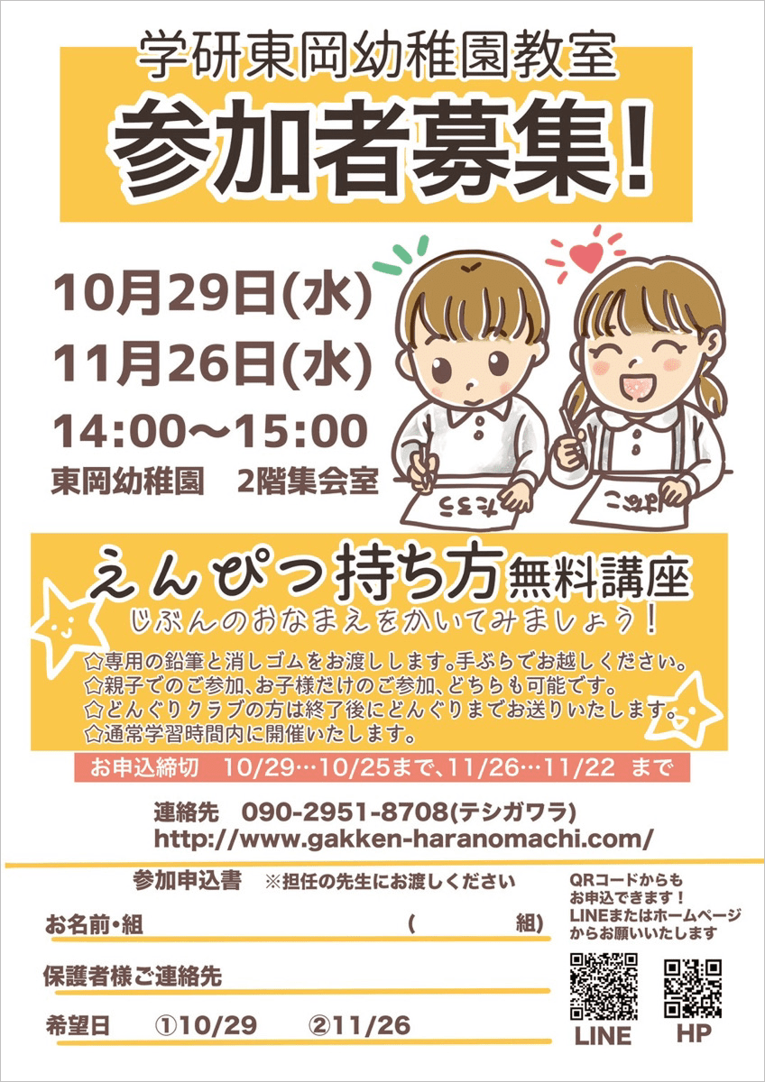 - 学研 東岡幼稚園プチ講座のお知らせ