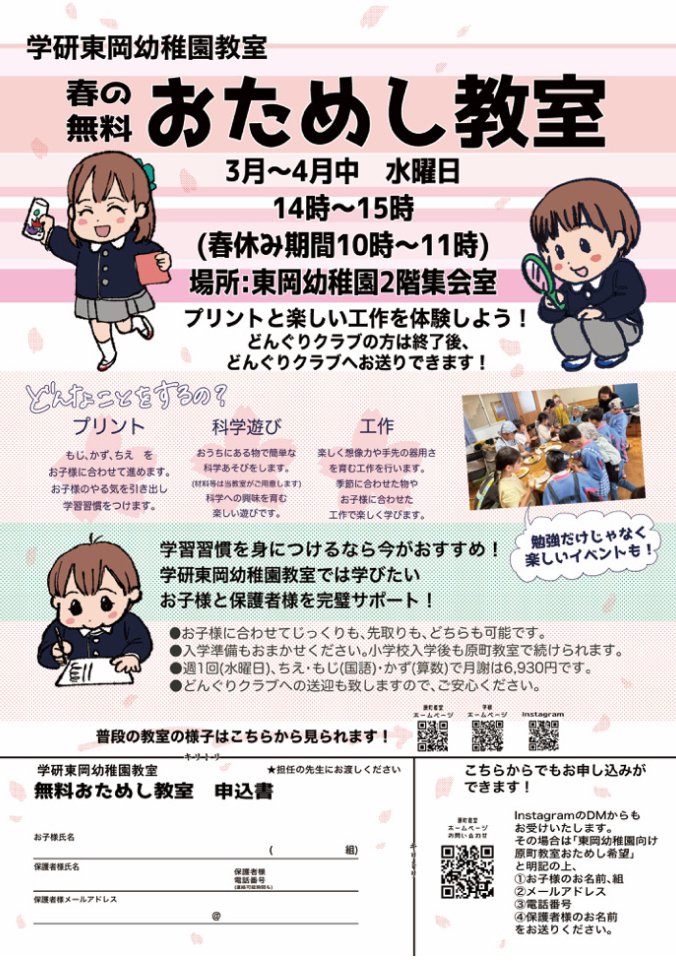 - 東岡幼稚園教室(水曜) 春休み期間中10:00〜11:00